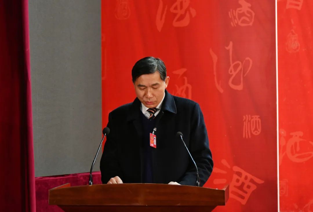 ▲市政协副主席李松作市政协七届二次会议提案审查情况的报告