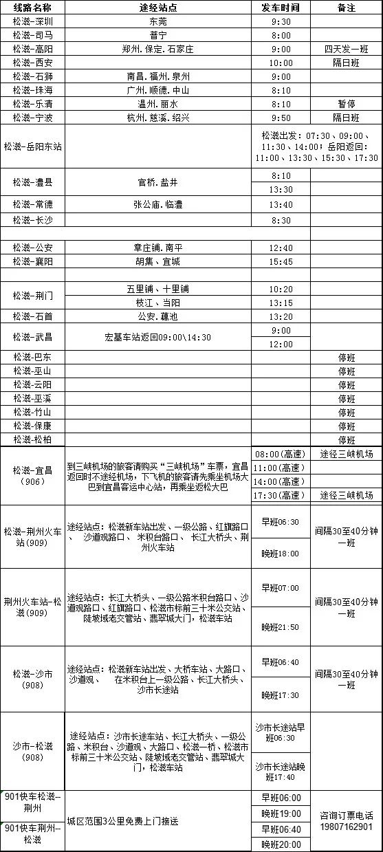松滋客运站班车时刻表
