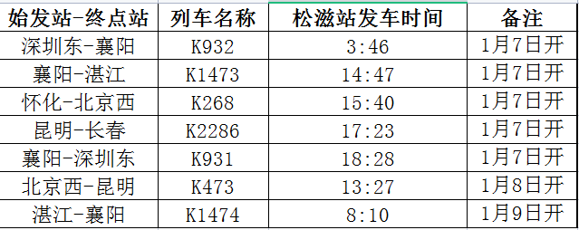松滋火车站班次时刻表