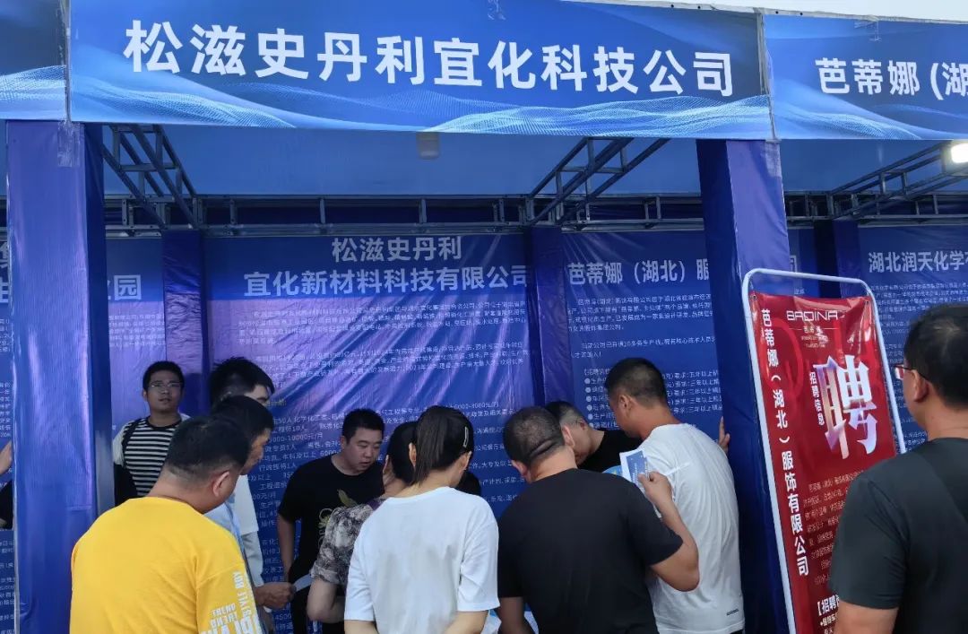 招聘现场,松滋史丹利宜化新材料科技有限公司招聘专员介绍,公司今年十月份有一条生产线投入生产,此次招聘会提供了200余个岗位,其中60%为大学生岗位。