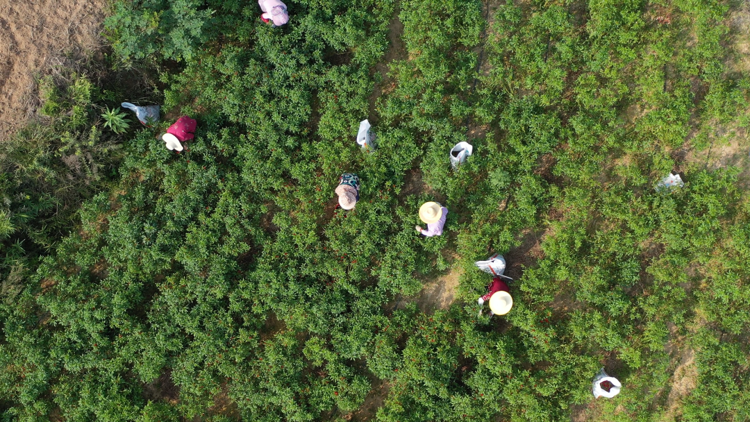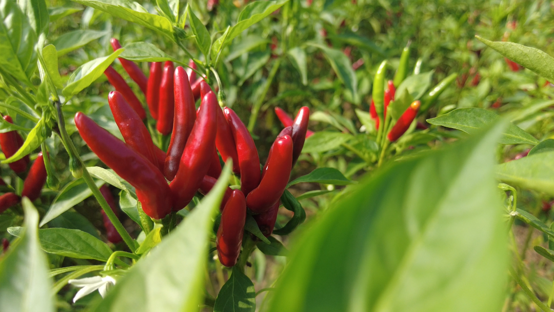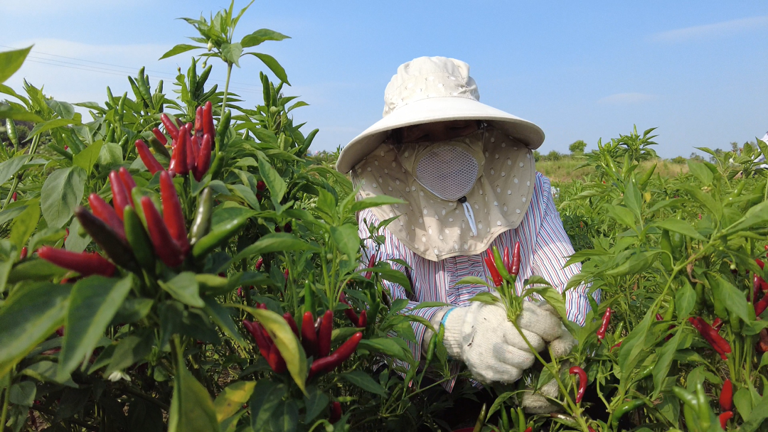 “今年种植了内黄新一代朝天椒和山鹰椒子弹头两个品种,辣椒采摘后进行烘干,制成干皮后售往武汉调味料公司。”彭远梅说。