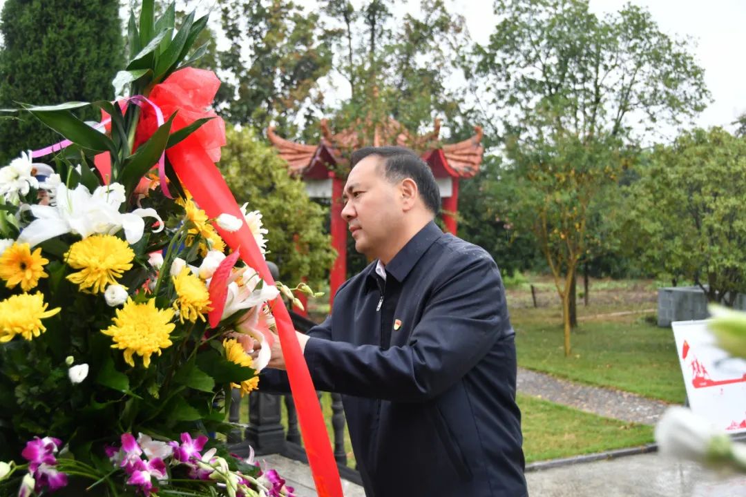 怀着无限敬仰,市委书记沈先武缓步走上前整理花篮缎带,并向纪念碑行鞠躬礼。随后,全体人员依次敬献鲜花,缓步绕行,瞻仰烈士纪念碑,缅怀英烈功勋,汲取奋进力量。