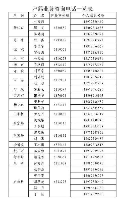 3.户籍业务咨询电话