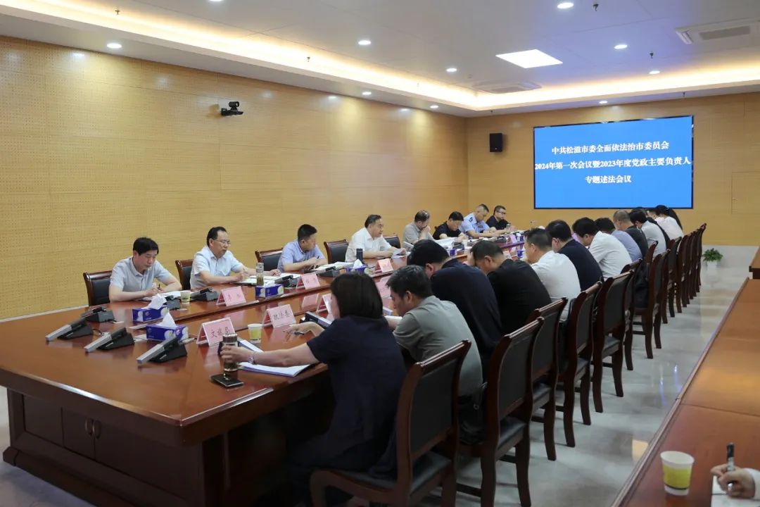 5月28日,中共松滋市委全面依法治市委员会2024年第一次会议暨2023年度党政主要负责人专题述法会议召开。市委书记、市委全面依法治市委员会主任沈先武主持会议并强调,要深入学习贯彻落实党的二十大精神和习近平法治思想,一体推进法治松滋、法治政府、法治社会建设,为“冲刺百强县、建设示范区”提供坚强法治保障。