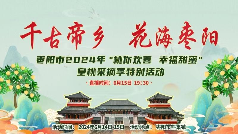 6月14日至15日,“千古帝乡·花海枣阳”枣阳市2024年“桃你欢喜·幸福甜蜜”皇桃采摘季系列活动在枣阳市熊集镇举办。6月14日晚,“出桃一夏 自在熊河”露营音乐派对,欢迎各位朋友到枣阳熊集,赏美景、尝美食、品文化、享生活。