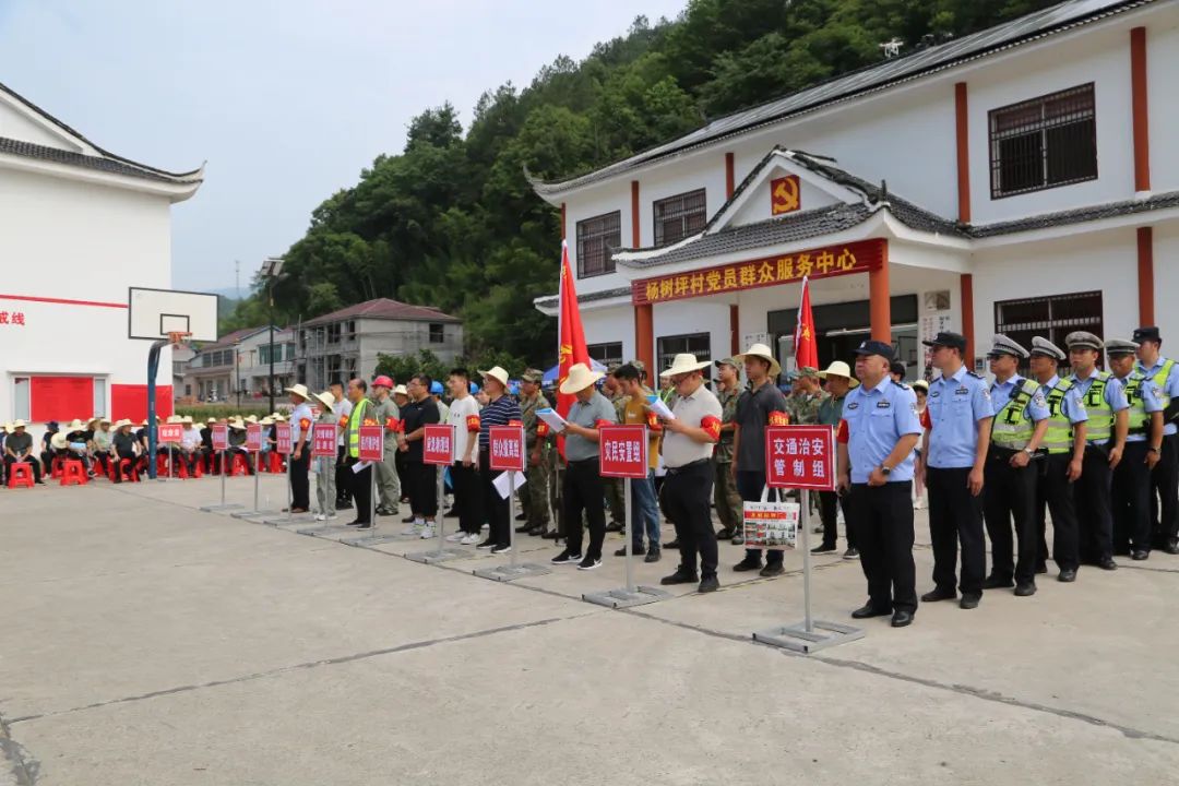 此次演练以模拟“杨树坪村三组一地灾隐患点遭受连续强降雨等不利因素影响,滑坡地质灾害多处产生变形,后缘坡体上形成一条地面裂缝,直接威胁周边居民生命财产安全”为背景展开。该隐患点监测员通过雨前巡查发现险情,立即上报。综合协调组、交通治安管制组、应急救援组、灾情调查监测组、医疗救护组、群众撤离组等九个工作小组迅速到达现场,对灾害点进行调查监测,报告灾情。