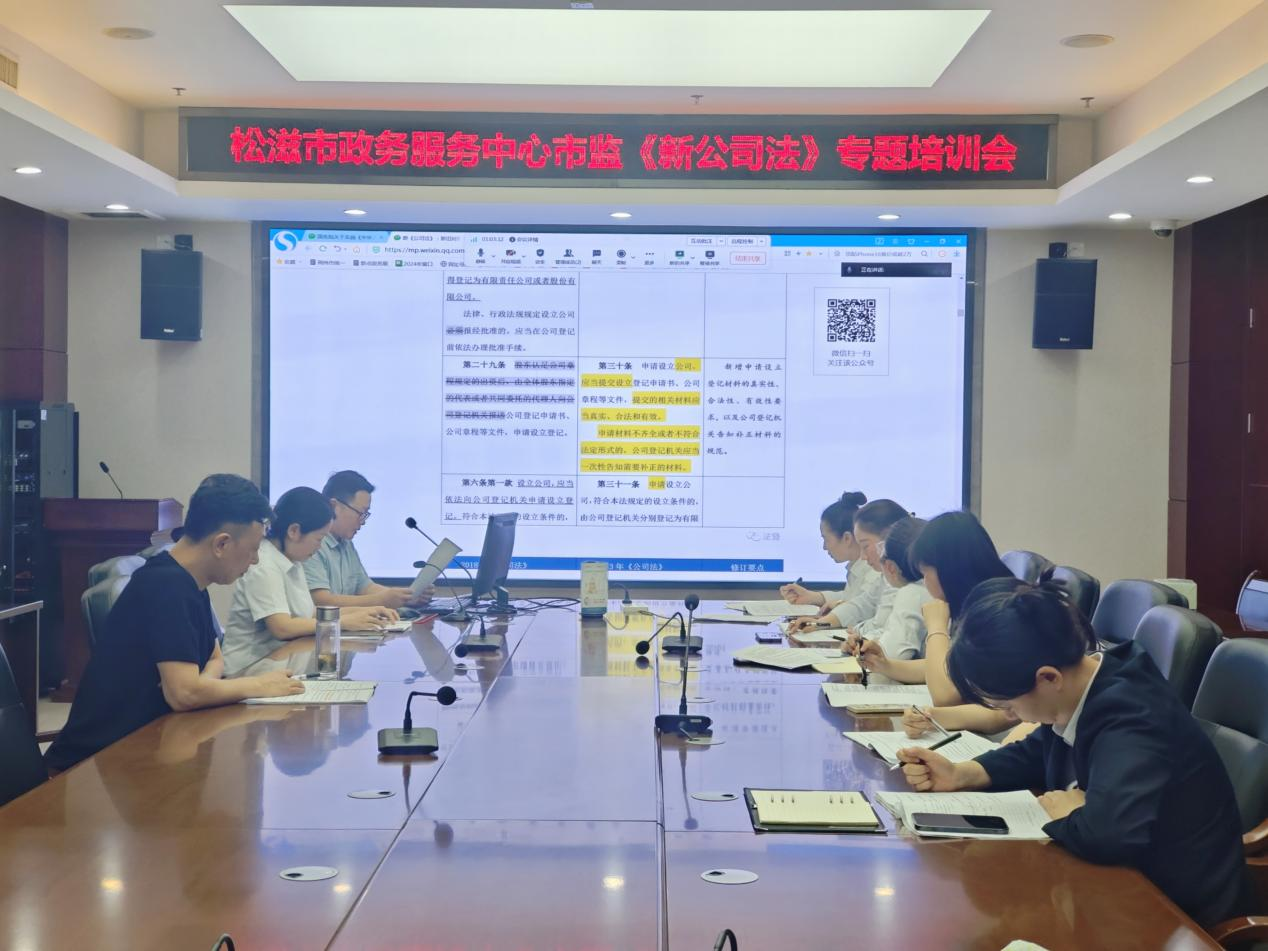 通过这次培训,加强了窗口工作人员对新《公司法》的深刻理解,下一步,松滋市登记许可服务中心将围绕新《公司法》继续深入开展宣传和指导工作,持续加强法律知识学习,及时响应和引导服务需求,提升经营主体登记注册便利化水平,为助力优化法治营商环境和县域经济高质量发展持续贡献力量。(编辑:唐宇杰)
