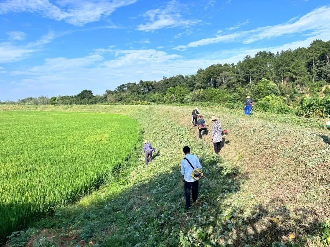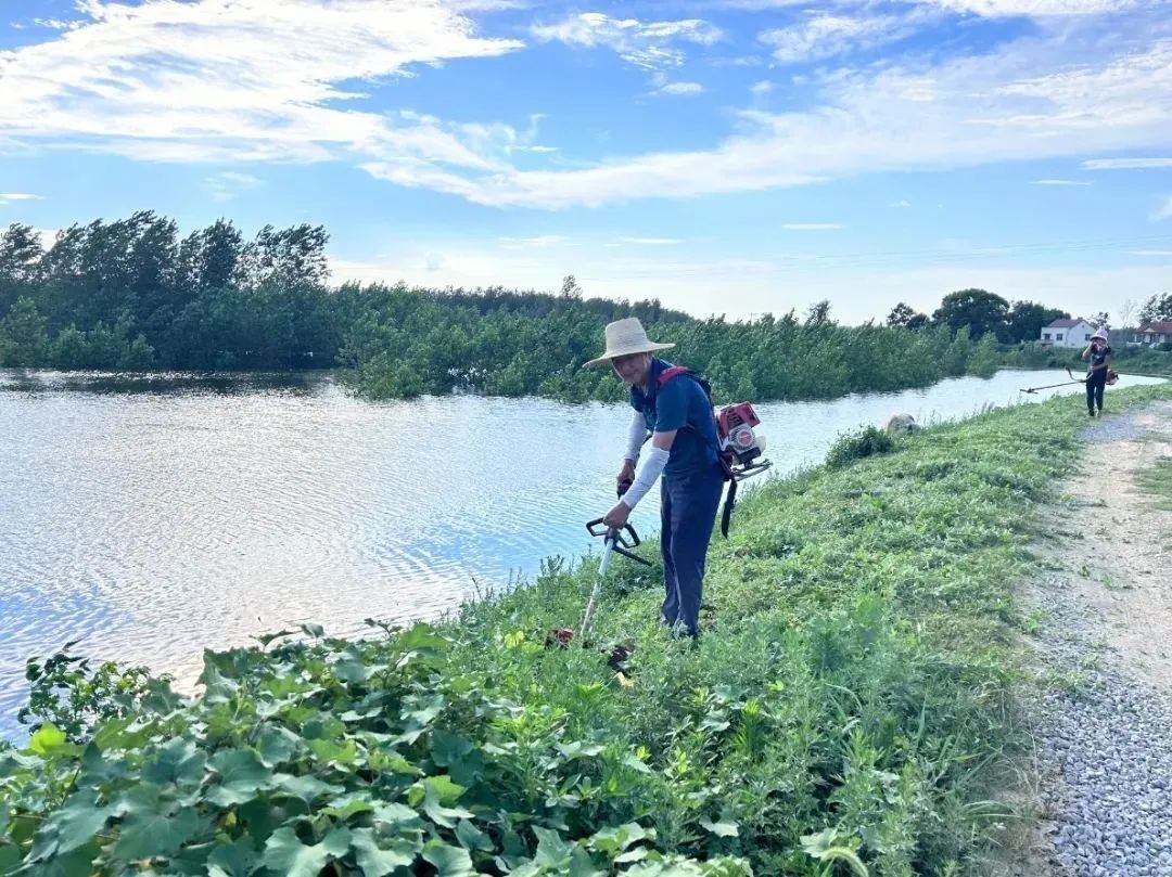河堤上,热浪滚滚,酷暑难耐,盘古山村4组组长、对口支援队长尤安国正带领村民清理堤面杂草,“段面既然交给了我们,砍完才能回家,谁让我们都是一家人呢。”