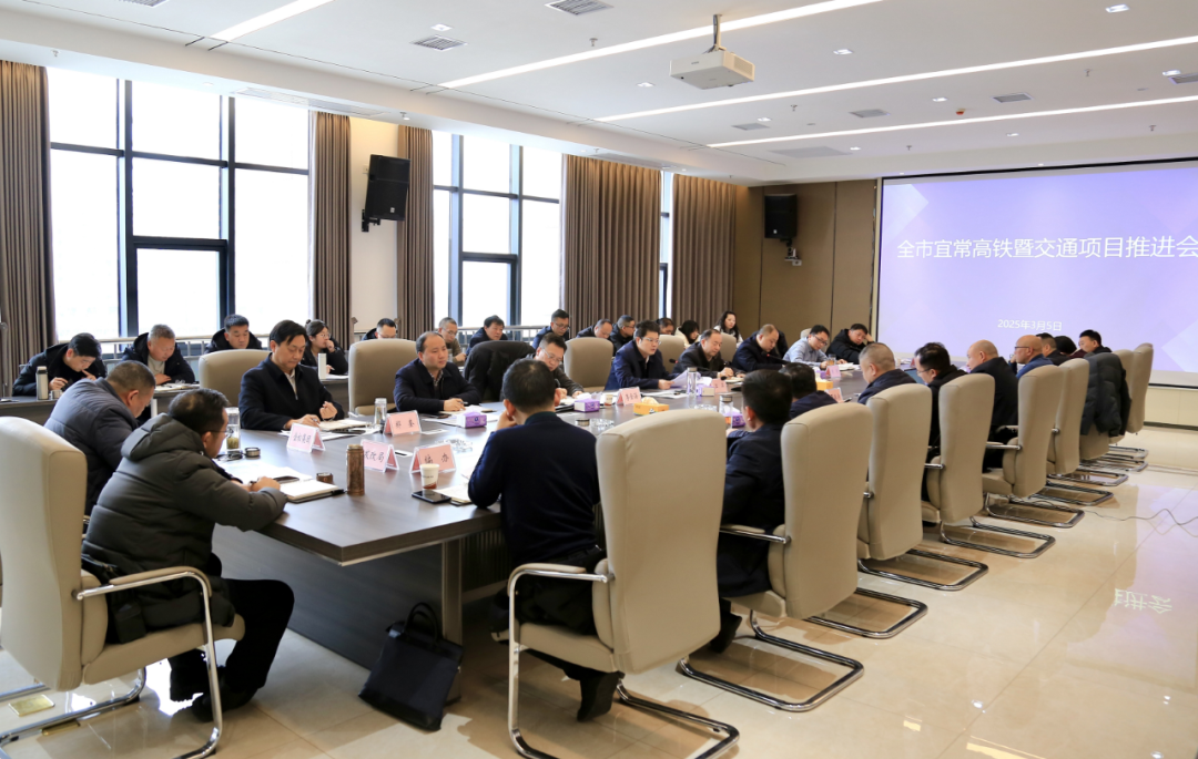 会议听取了宜常高铁项目进展情况、高铁产业新区及“三路一中心”规划以及2025年全市交通项目计划。