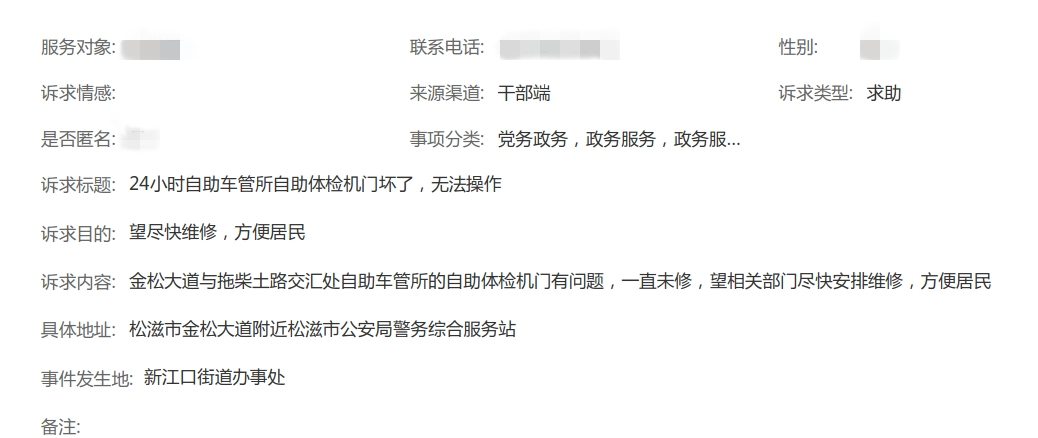 (通讯员:马邹)8月10日,松滋市“12345·民意速办”平台收到一条来自干部端的诉求:位于金松大道与拖柴土路交会处的公安24小时自助车管所体检机门出现故障,若不及时维修,将影响车管所业务的便利办理。