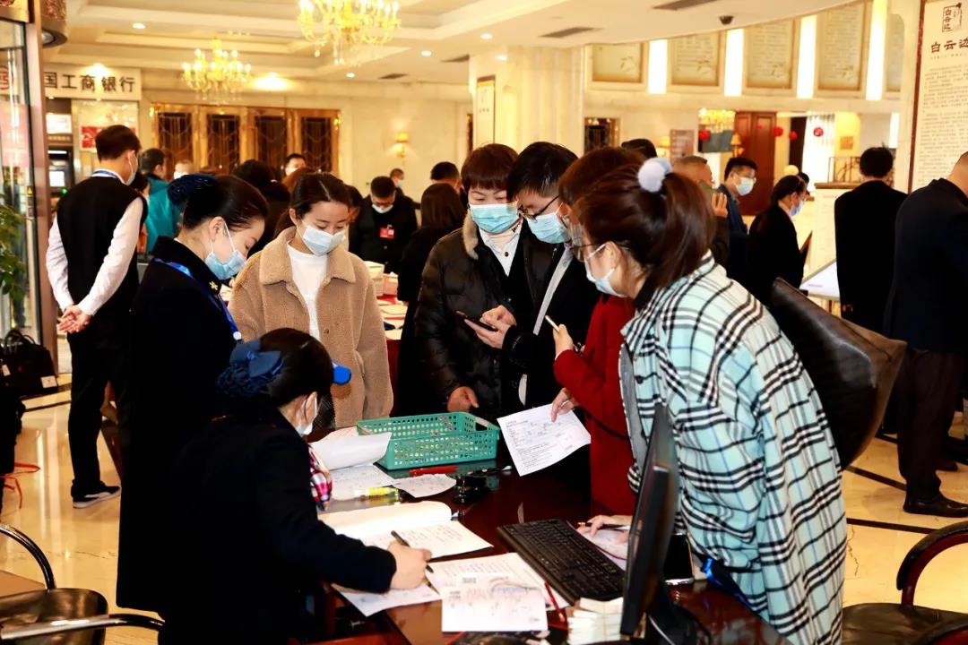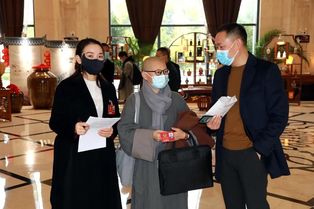 报到现场,委员们严格遵守疫情防控相关要求,在工作人员的指引下扫码、测温、登记签到、领取会议资料。