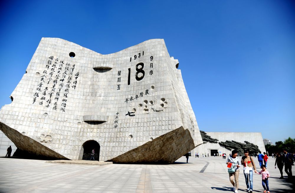 图为辽宁沈阳“九·一八”历史博物馆标志性建筑残历碑。图片来源:视觉中国