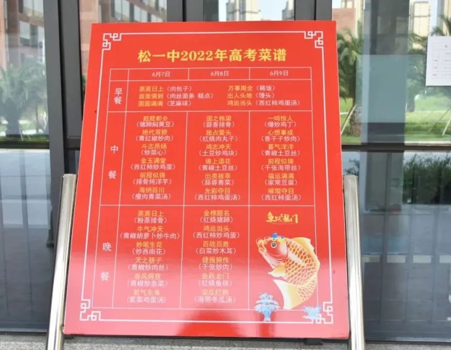 蒸蒸日上、金玉满堂、鸿运当头……高考期间,市一中食堂别出心裁,推出寓意满满的“高考套餐”,为高考学子助力。同时,对食堂进行搬家式打扫,餐具全面清洗消毒,力争为考生提供舒适、卫生的就餐环境。