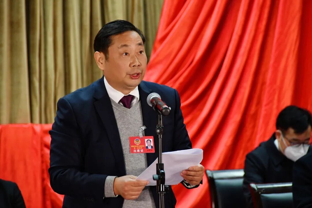 ▲市政协副主席李松作市政协七届二次会议提案审查情况的报告