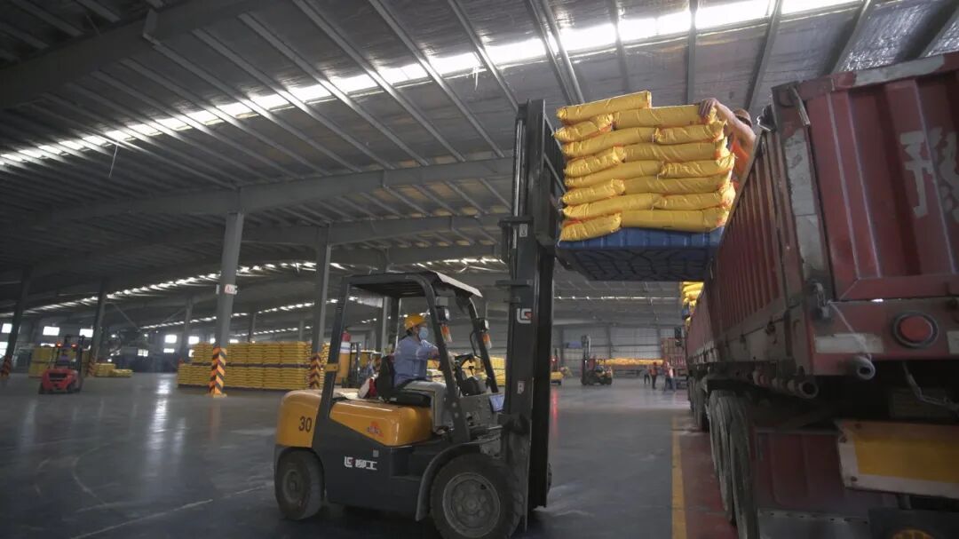 宜化松滋肥业生产车间内,机器高速运转,各条生产线马力全开,工人们忙碌不停,全力以赴赶订单,冲刺一季度销售目标。