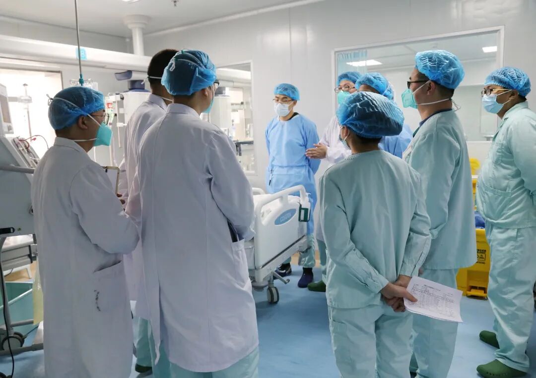坚持“应收尽收、应治尽治”原则,ICU将床位扩增至22张,并很快“满员”。患者数量增加一倍,医护人员陆续感染新冠,ICU瞬间面临人手不足的困境,只能带病上岗。