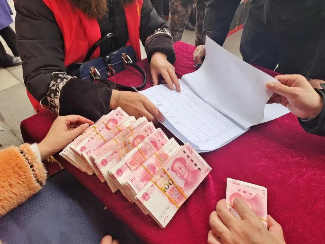 (记者:张杰)街河市镇新星村稻香食坊广场前,村民们正排着长队,领取村里为80岁以上老人发放的“暖冬礼包”,这份礼包内含800元钱、一袋橙子、一袋米和两斤酒。