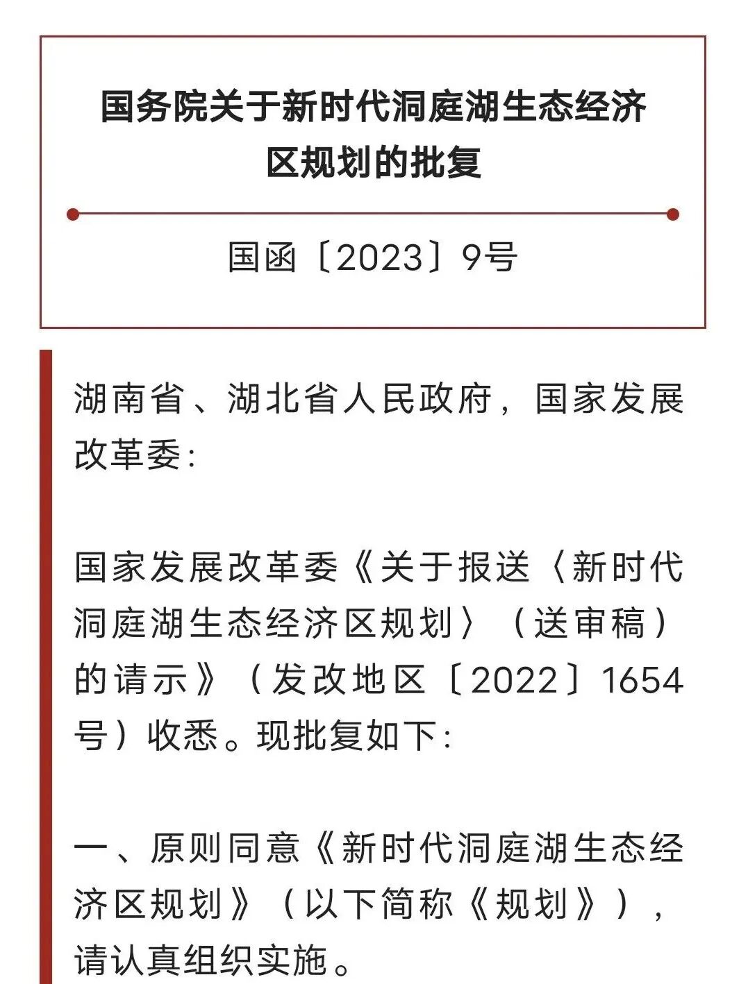 洞庭湖地跨湖南、湖北两省,是我国第二大淡水湖,素有“鱼米之乡”和“天下粮仓”的美誉,是全国重要的农业经济示范区和大宗农产品生产基地。2014年,国务院正式批复洞庭湖生态经济区规划,洞庭湖生态经济区正式上升为国家战略,湖北省荆州市名列其中。(来源:中国政府网)