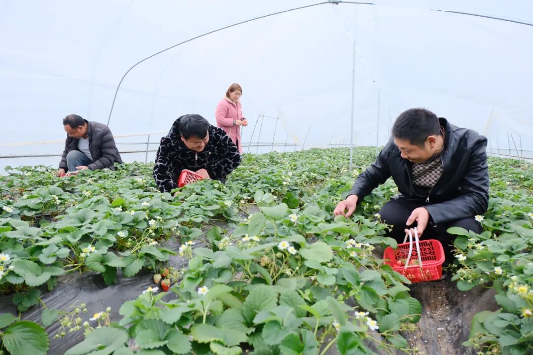 (记者 许春阳 张子翰)早春时节,春寒料峭,涴市镇新发桥村的一片大棚内却春意盎然。绿叶和藤蔓掩映间,一颗颗鲜红饱满的草莓探出头来,层层叠叠,散发出浓郁的果香。