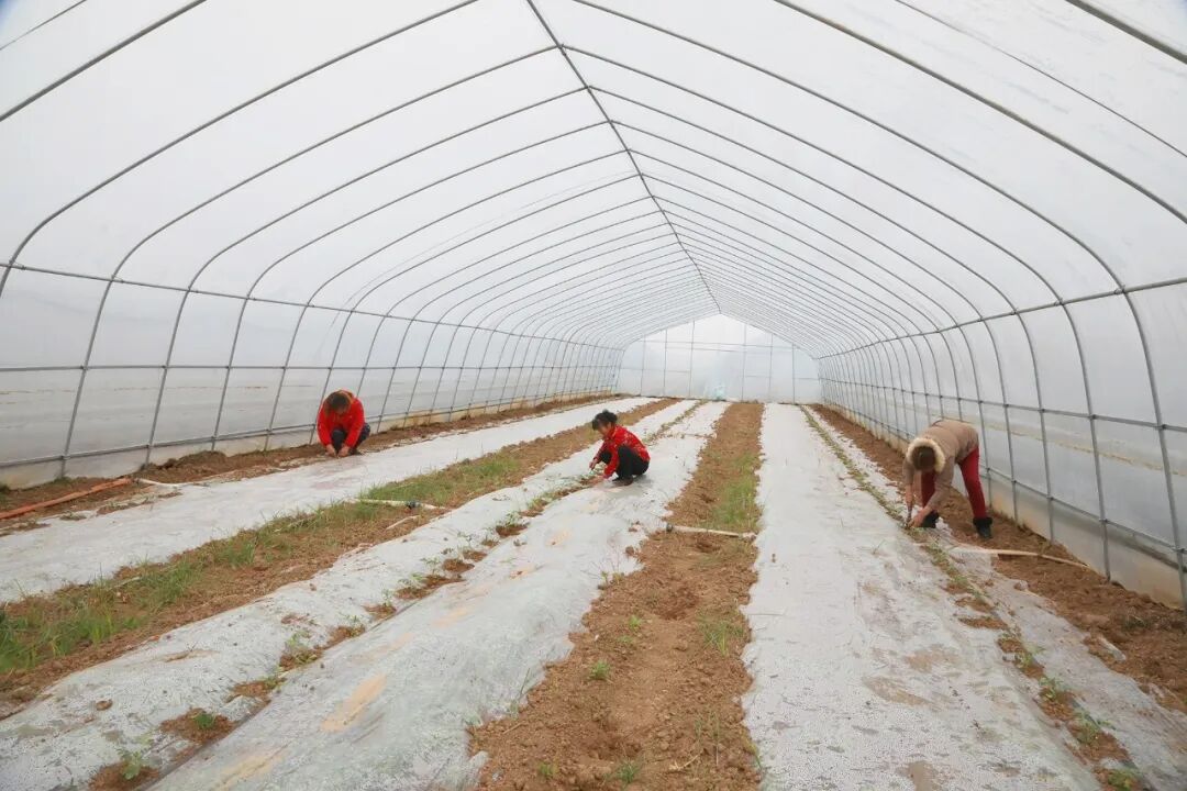 在涴市镇杨家垴村的蔬菜大棚里,农户们正忙着栽种新一茬西瓜,一株株瓜苗茁壮成长,绿意盎然,焕发着勃勃生机。