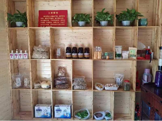 琳琅满目的货柜上,时令蔬菜、洈水刁子鱼、麻水豆皮、卸甲坪葛粉、杨林市香肠等特色农产品应有尽有,全部张贴杨家冲社区股份经济合作社注册的商标“马兰花开”。网格员全天候值守运营,既对接“双裕农业”“双裕商贸”线下终端,又建起了网格居民物资供应站,受到社区居民一致好评。