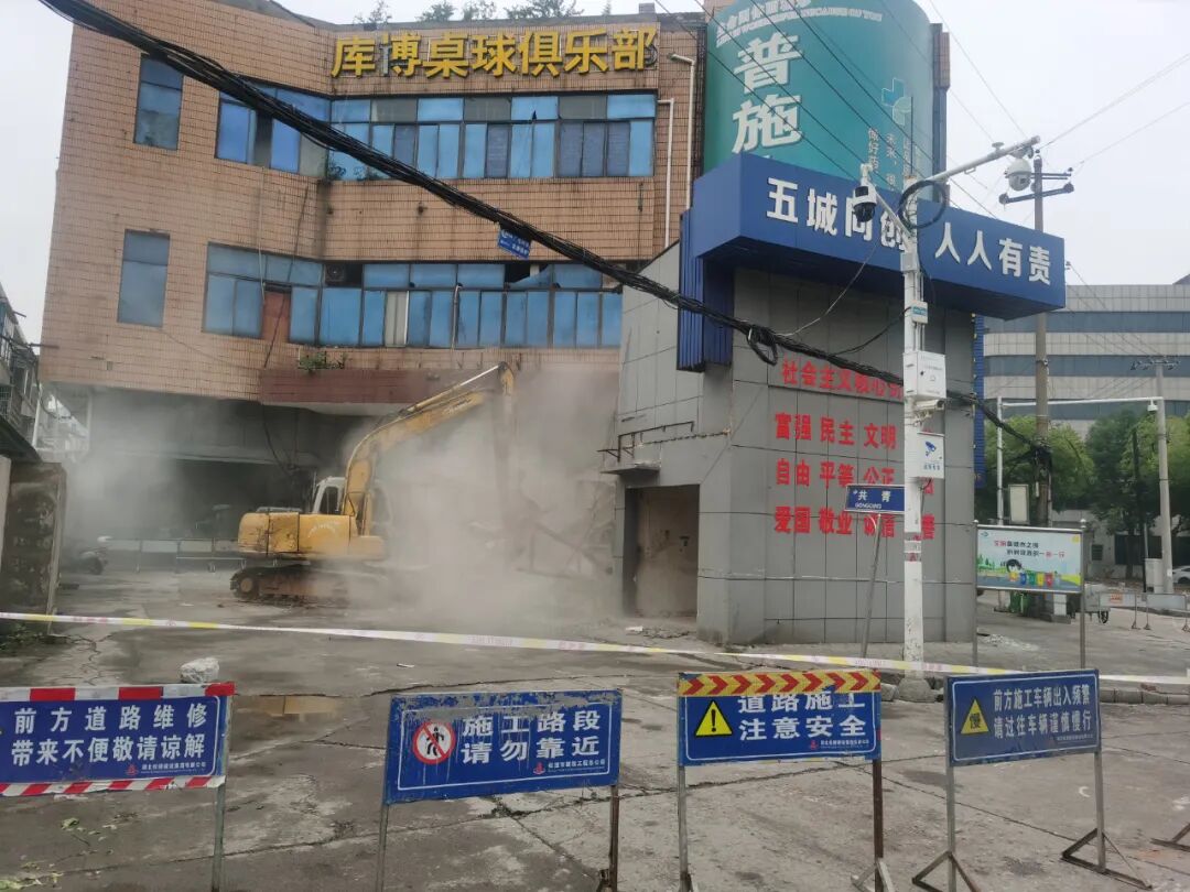 在严格落实安全、环保防护措施后,5月23日,拆除工作启动,采取边拆除边清运的方式,将共青路大楼附属五间门面房全部拆除完毕。