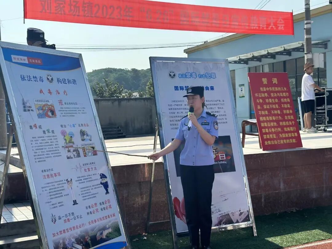 毒品之害猛如虎!为进一步增强青少年辨别毒品、拒绝毒品的能力,推动辖区禁毒工作进一步走深走实,提高辖区群众特别是广大青少年自觉防毒、禁毒的意识,遏制毒品违法犯罪活动。6月26日,刘家场派出所联合镇党政办、综治办在刘家场初级中学开展“6.26”国际禁毒日法治宣传活动,向应届初、高中毕业生和过往群众发放印有禁毒法规的宣传材料、扇子和志愿者帽子,讲解毒品对人类和社会的危害,并现场解答群众的提问。