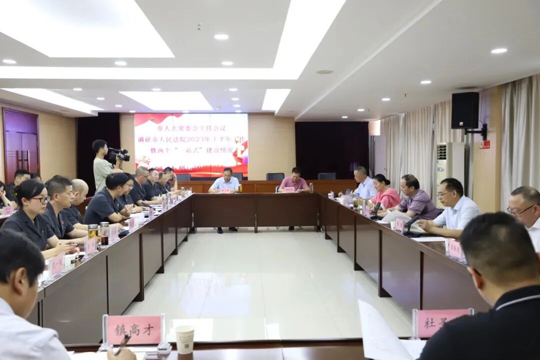 7月31日,市人大常委会主任覃文忠带队专题调研市人民法院2023年上半年工作暨两个“一站式”建设情况。