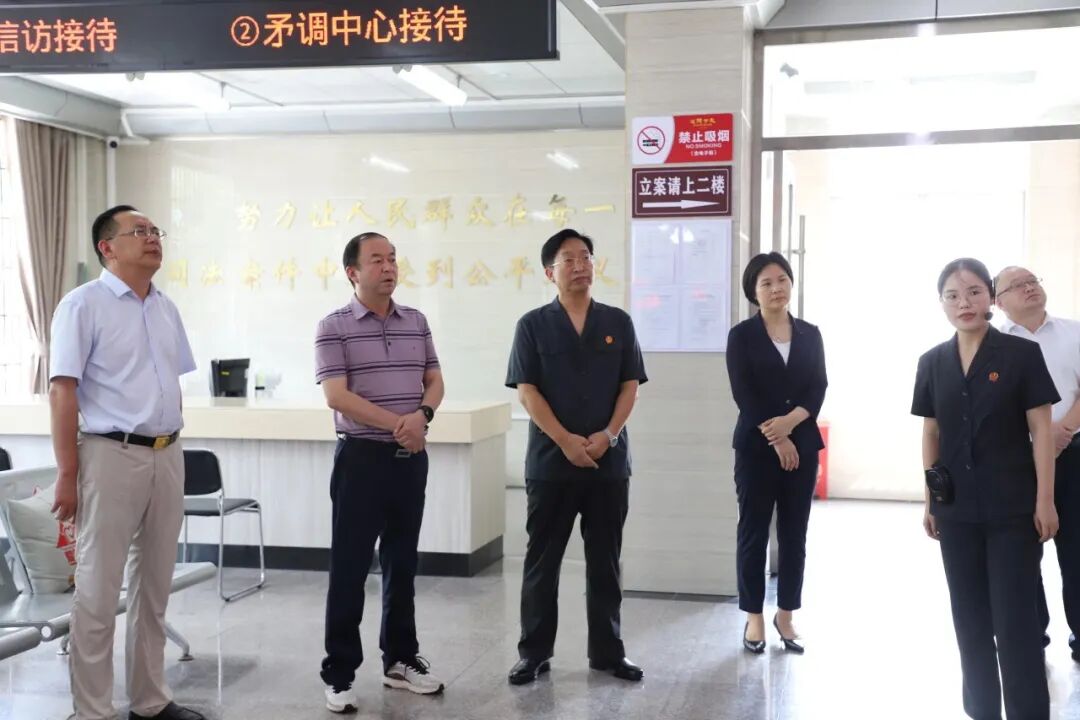 调研组一行实地察看市人民法院诉讼服务大厅、姚明华工作室、执行事务中心、第七审判庭和实物陈列馆等地,通过听取汇报、实地观摩等方式,详细了解法院诉讼一站式多元解纷、一站式诉讼服务体系建设情况。