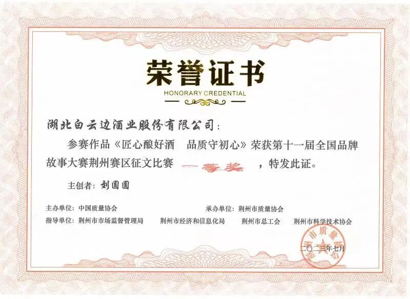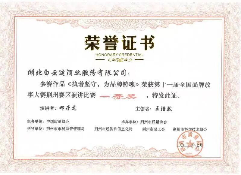 (通讯员:王小波 冉旭阳)近日,在第十一届全国品牌故事大赛(荆州赛区)比赛中,湖北白云边酒业股份有限公司《执着坚守,为品牌铸魂》获演讲比赛一等奖,《匠心酿好酒,品质守初心》获征文比赛一等奖,并荣获最佳组织奖。这是继第九届全国品牌故事大赛(荆州赛区),白云边再次获得双冠。
