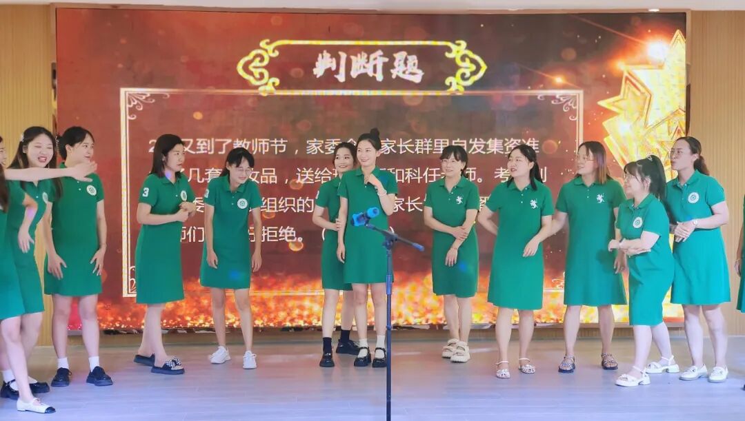 市高成初级中学教师节庆祝活动现场,家长代表为班级科任老师赠送锦旗,表达深深祝福与感谢。