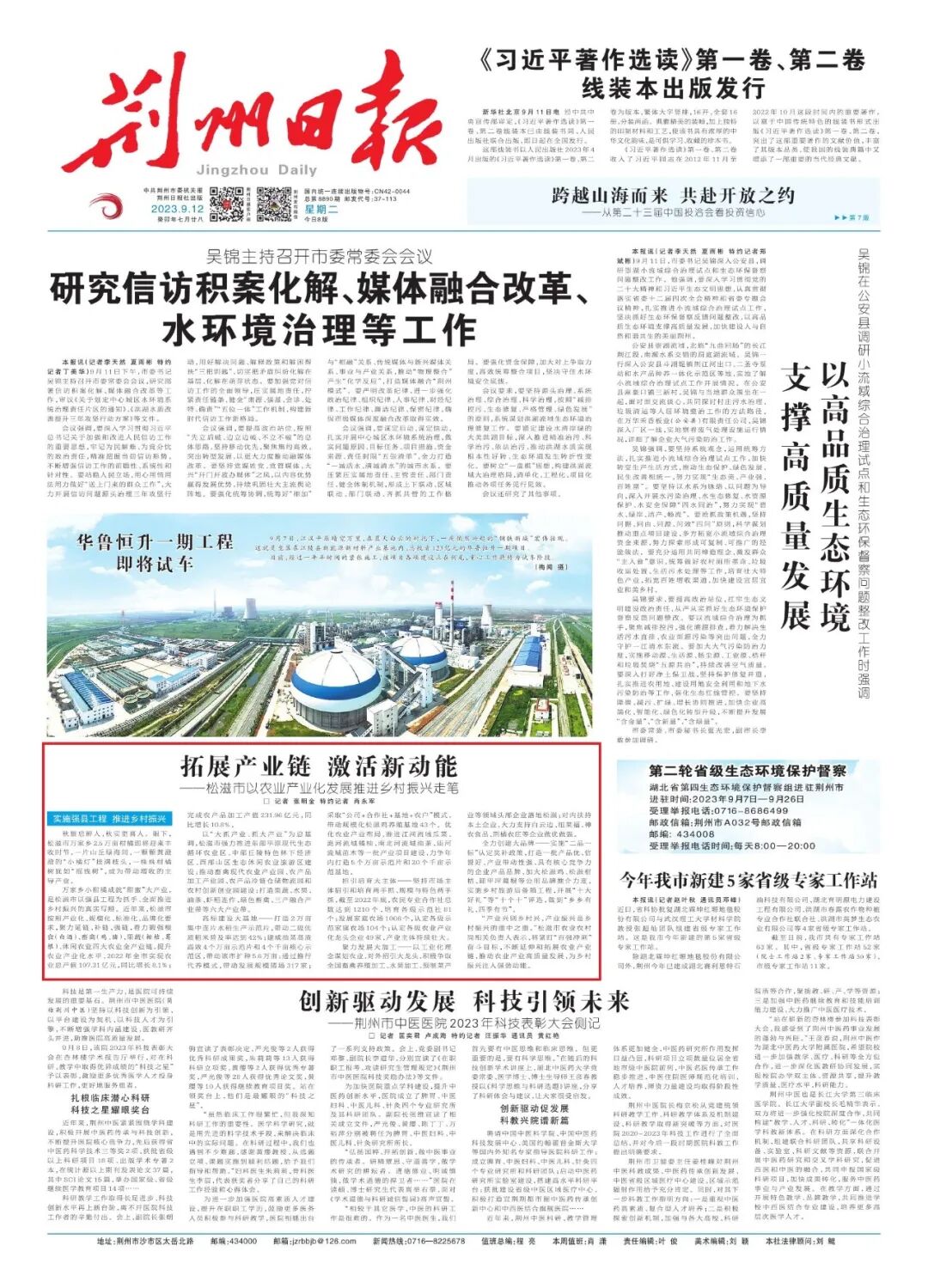 聚力发展大加工——以工业化理念谋划农业,对外招引大龙头,积极争取全国畜禽养殖加工、水果加工、预制菜产业等领域头部企业落地松滋;对内扶持本土企业,大力支持白云边、纽莱福、神农食品、荆橘农庄等企业做优做强。