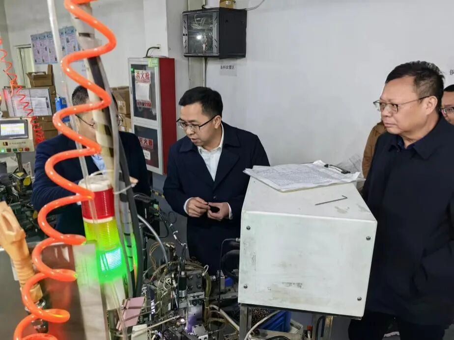 在苏州某电子科技有限公司,夏玉强通过听取介绍、实地查看生产车间等方式,了解企业核心技术、上游链企业供应、厂房选址等情况,并诚邀企业来松考察,洽谈合作、共谋发展。