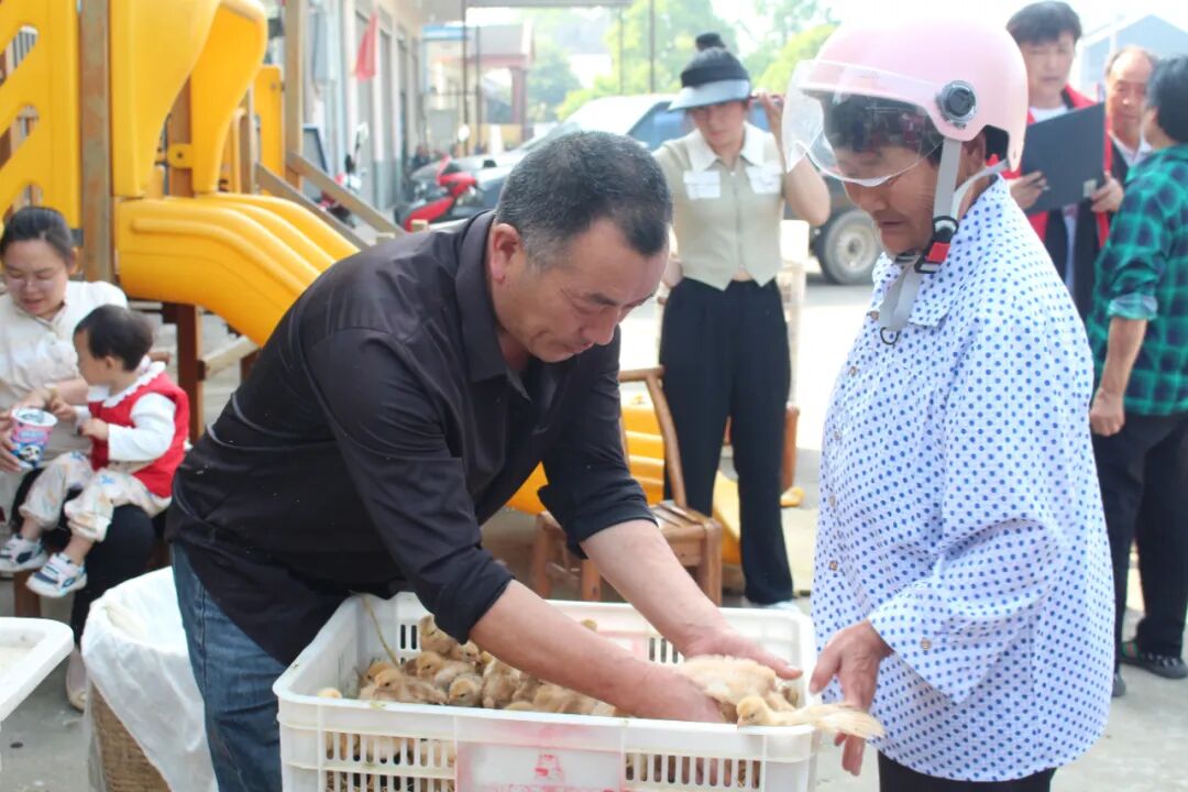 当日,村民有序领取鸡苗的同时,技术人员现场为群众传授鸡苗养殖注意事项、疫病防治、管理、消毒等技术知识。