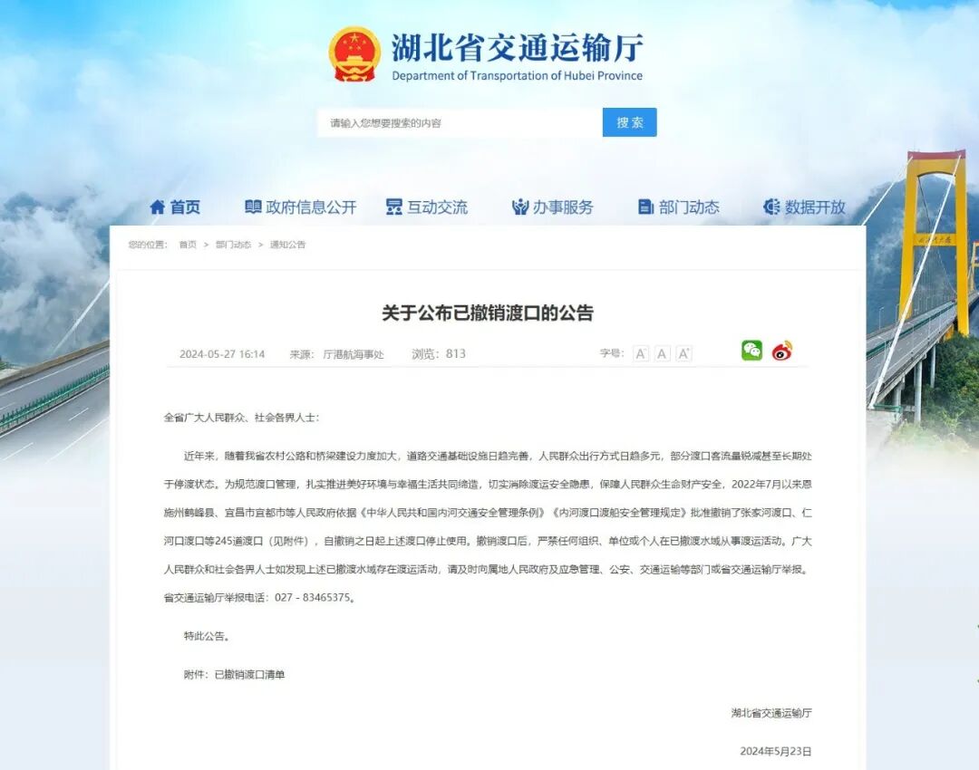 注意!松滋这些渡口已停止使用 2024-05-30 21:10 云上松滋 0 5月27日 省交通运输厅官网发布 《关于公布已撤销渡口的公告》 我市许家榨渡口等10道渡口被撤销 撤销渡口后 严禁任何组织、单位或个人 在已撤渡水域从事渡运活动 松滋已撤销渡口清单