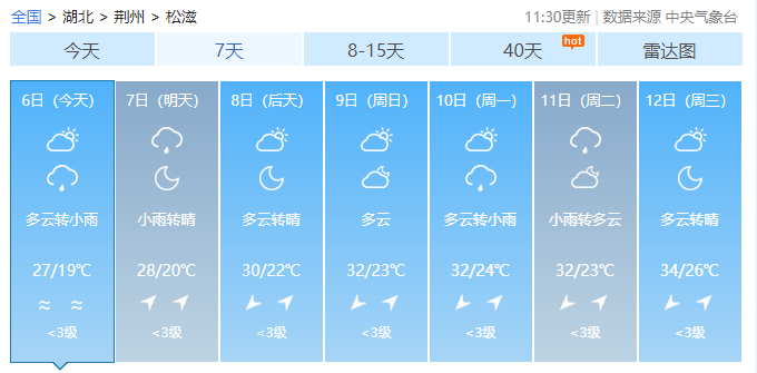 预计7~9日高考期间,我市以多云天气为主,气温较高。具体预报如下:6日多云,夜间小雨,19~27℃;7日小雨转晴,20~28℃;8日多云转晴,22~30℃;9日多云,23~32℃。