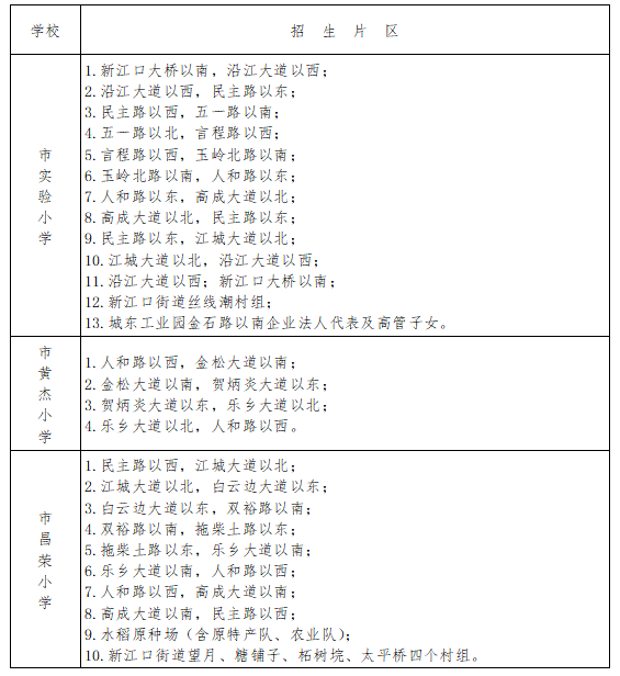 监护人在中心城区无固定房产,或在新江口街道、乐乡街道各社区、行政村无户籍的,在中心城区、城东、城北及临港工业园企业务工人员、个体工商户户主子女,根据招生学校学位供给情况调剂到城区学校入学。