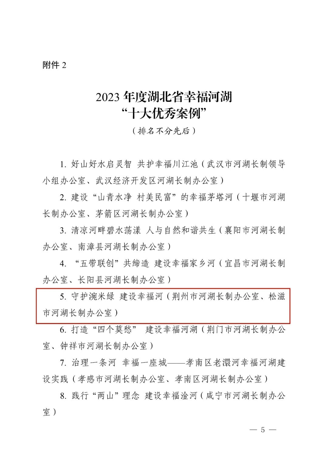 (记者 熊雨雯 通讯员 刘玉兰)近日,湖北省河湖长制办公室公布了2023年度湖北省全面推行河湖长制“十大典型案例”和幸福河湖“十大优秀案例”,其中我市《守护涴米绿 建设幸福河》案例,入选2023年度湖北省幸福河湖“十大优秀案例”,是荆州市唯一入选案例。