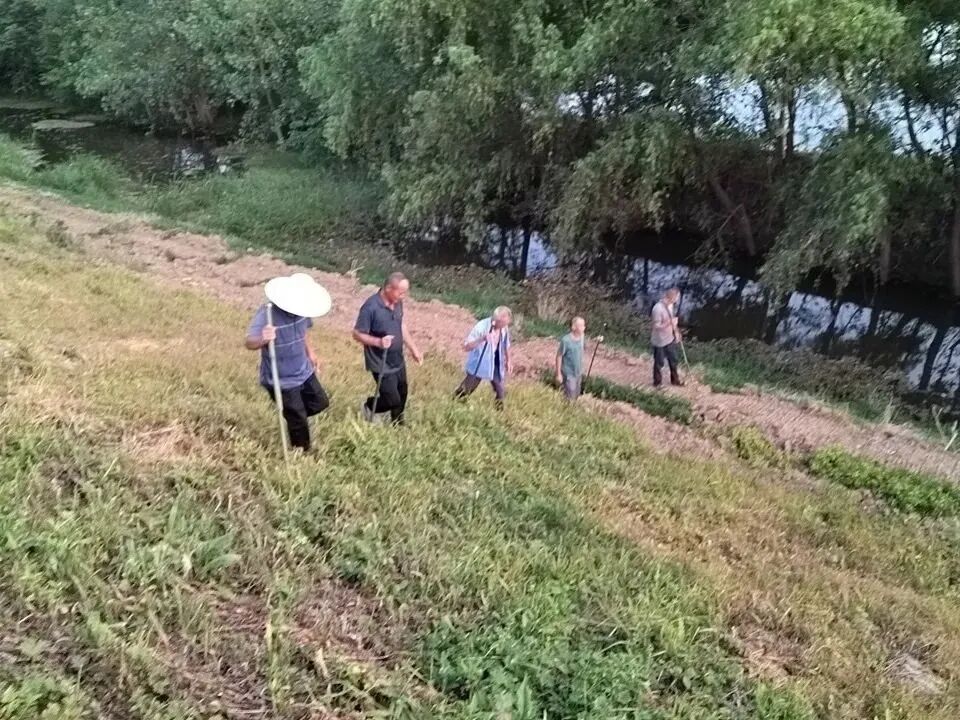 烈日当空,他们背着十几斤的割草机坚定地行走在河堤上,身上的衣服干了又湿,湿了又干,脸被晒得通红,却没有一人抱怨,认真地清除堤面杂草。“我们是‘疯狂’割草人。”他们相互打趣。