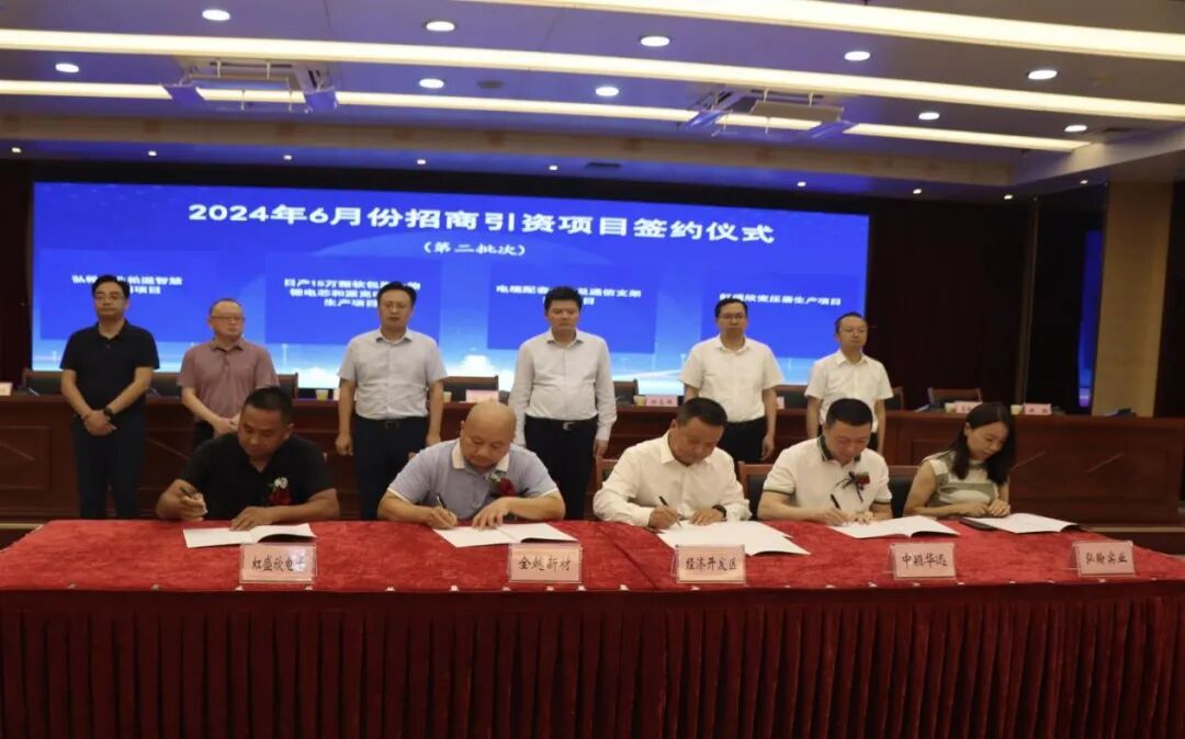 6月27日,我市举行6月份招商引资项目签约活动,其中场内签约项目9个,总投资额17.75亿元;场外签约项目9个,总投资额9.6亿元;共计签约18个项目,总投资额27.35亿元。6月份,全市共计签约项目120个,投资总金额83.2亿元,其中亿元以上项目16个。