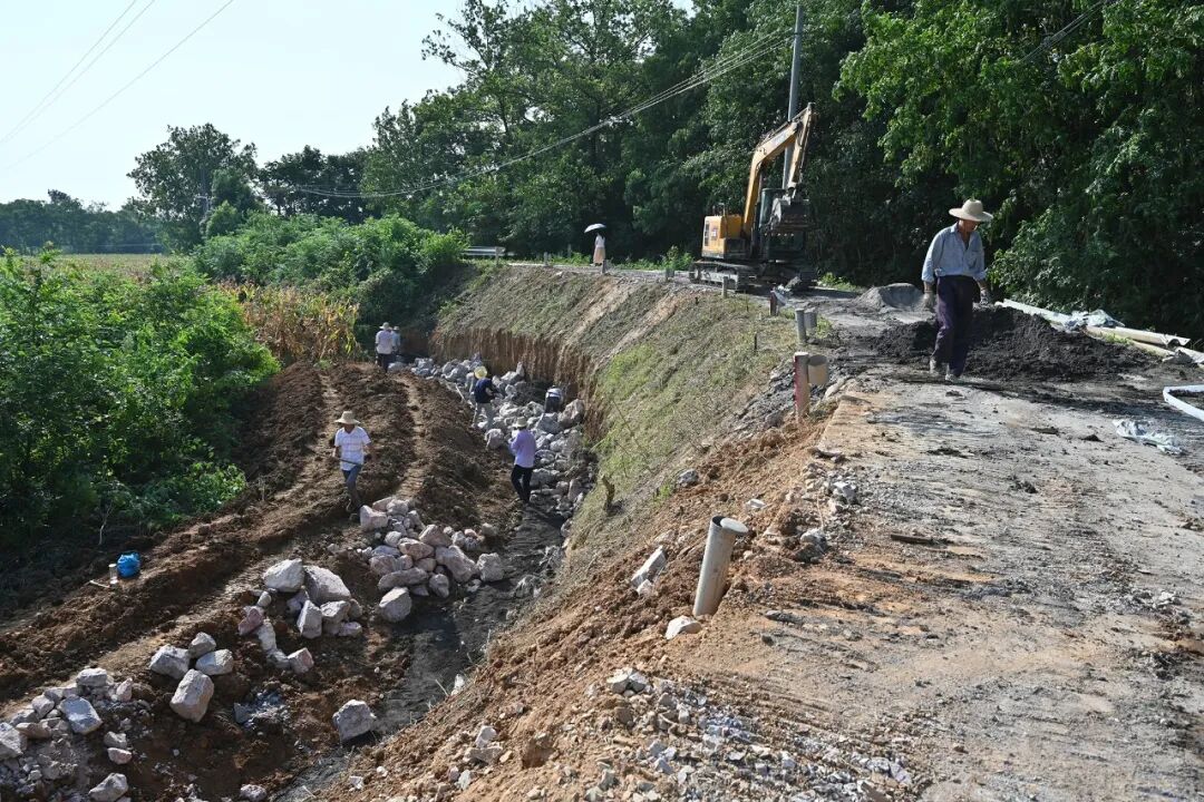 面对旱情,王家桥镇迅速组织劳力200余人、机械设备30余台,投入资金30余万元,通过分村包段、“人机互补”等方式,对各沟渠进行除障清淤。同时,还对花园桥段面80米的外脱坡险情进行内外坡修复,打通下游农田灌溉“肠梗阻”,确保北河水库放水畅通。
