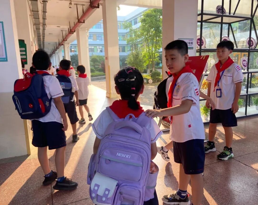 早上7点,实验初中的校门口便已熙熙攘攘。学生们三五成群,一边热议着假期的趣闻和新学期的打算,一边步入校园。校园内,彩旗招展,“欢迎新同学 开启新旅程”的横幅格外醒目。教室里,干净的桌椅、精美的黑板报、温馨的欢迎标语,以及桌上的小礼物让学生们惊喜不已。