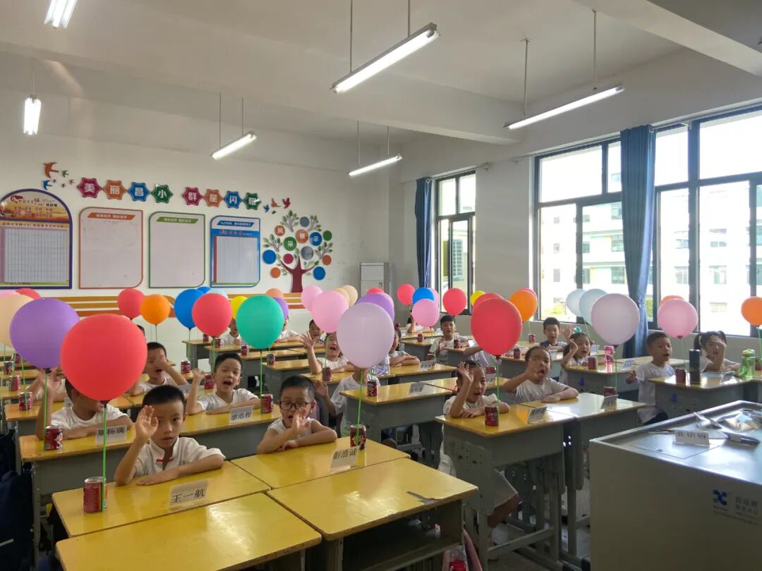 昌荣小学门口,高年级的同学细心地为一年级新生指引道路,带领他们找到教室。教室里,老师精心布置,开学标语、五彩缤纷的气球将开学氛围感拉满。