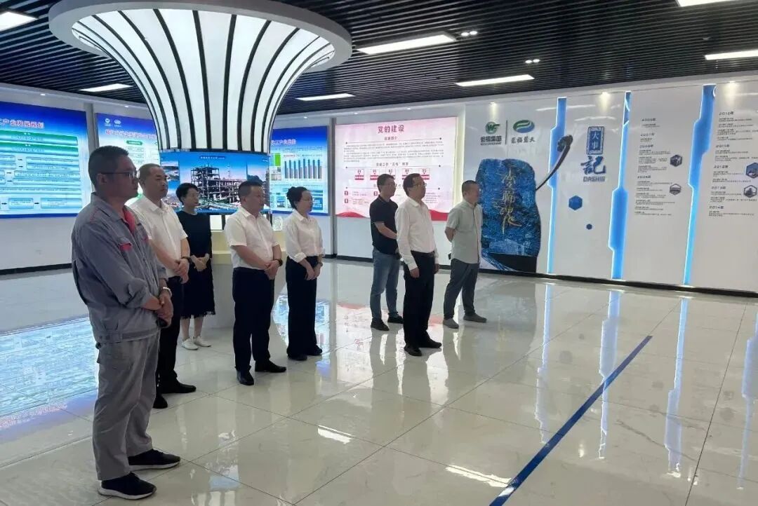 在天津某央企,夏玉强一行参观企业文化展厅,详细了解企业发展历程、科研成果应用、区域市场布局等情况,并与相关负责人就精细化学品创新基地项目展开座谈。