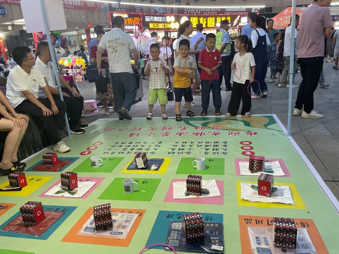 在油茶宝宝热情卖力地推介下,油茶、黄桃、白酒等摊位前人潮涌动,市民纷纷驻足挑选,精致创新的文创小礼品也吸引了不少人打卡欣赏。音乐声、叫卖声、欢呼声,点燃了夜的繁华。
