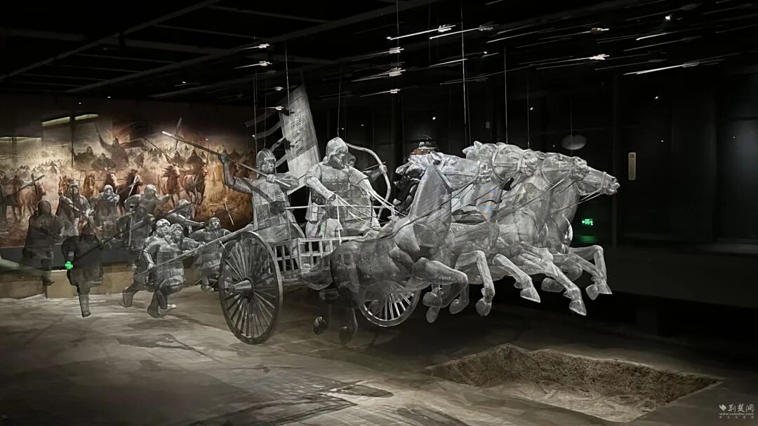 虚拟现实多媒体手段及艺术雕塑相结合的形式再现“中国仅有,天下第一”楚国“千乘之国”的国之威势,观众走进其中,感受战车战马从纱幕投影上呼啸而过,仿佛穿越时空、融入当下。