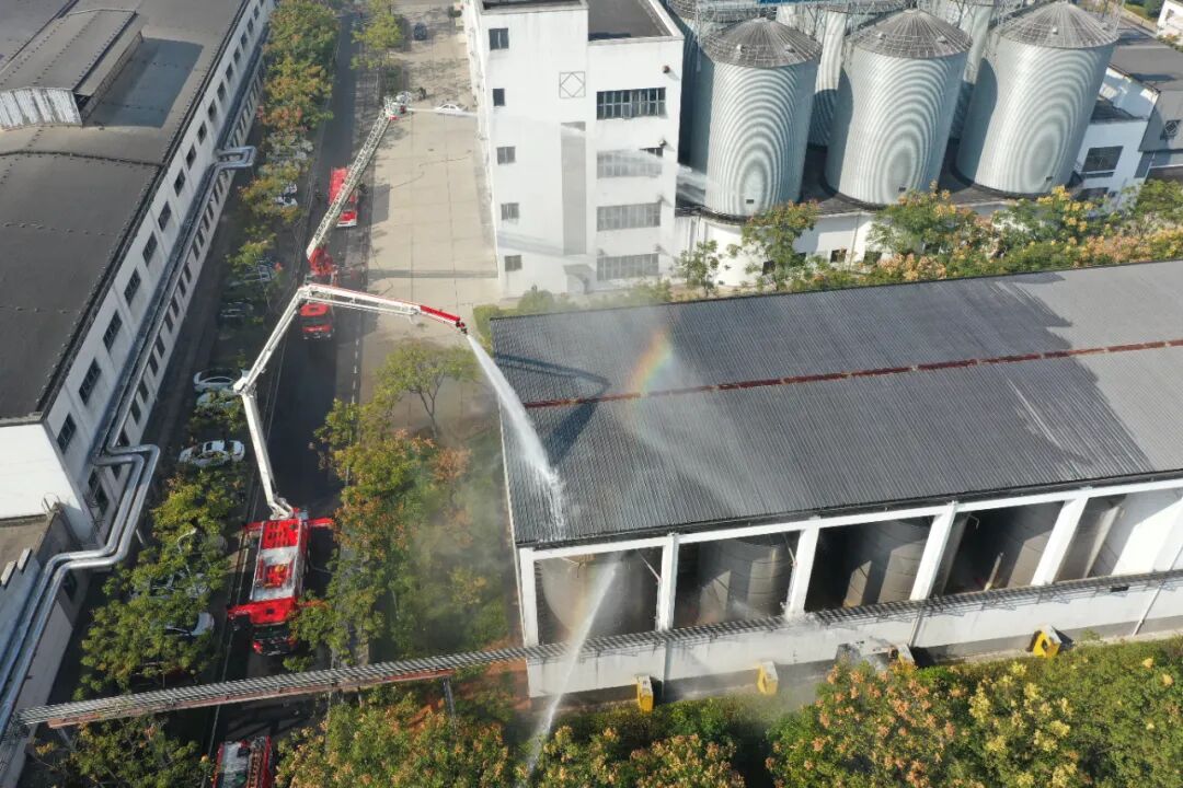 此次灭火救援演练模拟白云边酒业望月园区4号成品酒储罐因为高温、管道等因素发生泄漏起火,有爆炸的危险。
