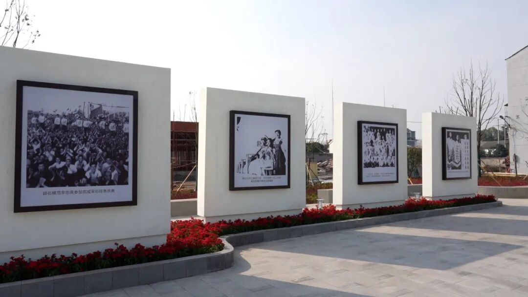在米积台社区,新建成的辛志英文化广场宽敞平坦、干净整洁,景观墙上文字、图片介绍着辛志英的故事。1933年,辛志英出生于松滋米积台,曾率领乡亲参与修建荆江分洪工程南闸堤坝立下汗马功劳。1952年,她被评为全国首批“特等劳动模范”。