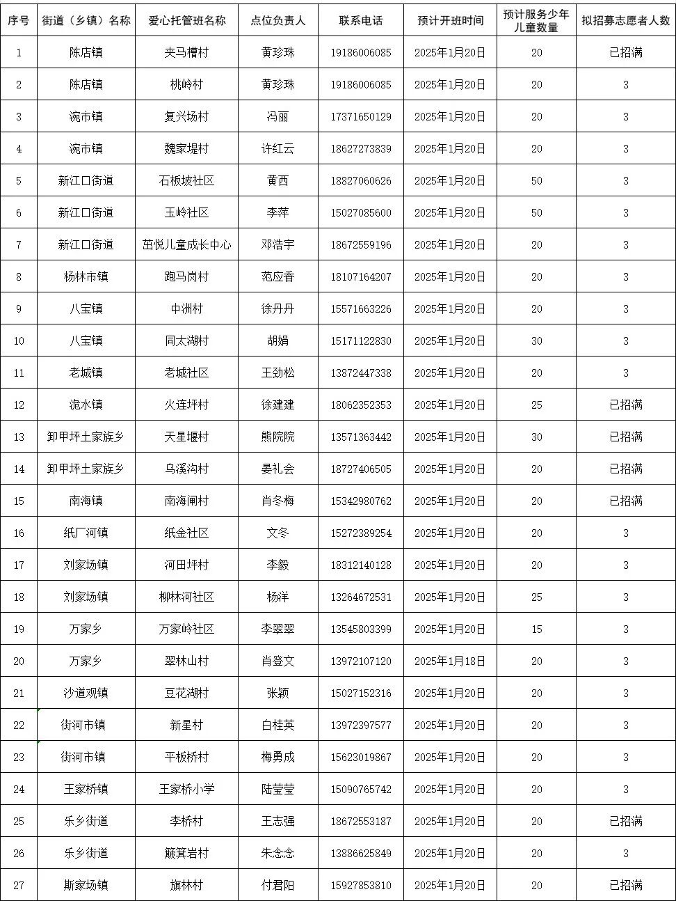 松滋市2025年寒假“爱心托管班”点位表