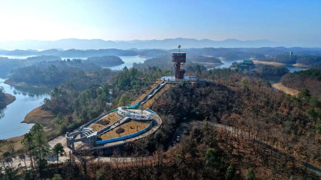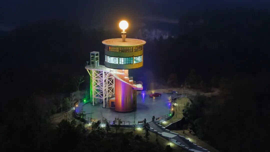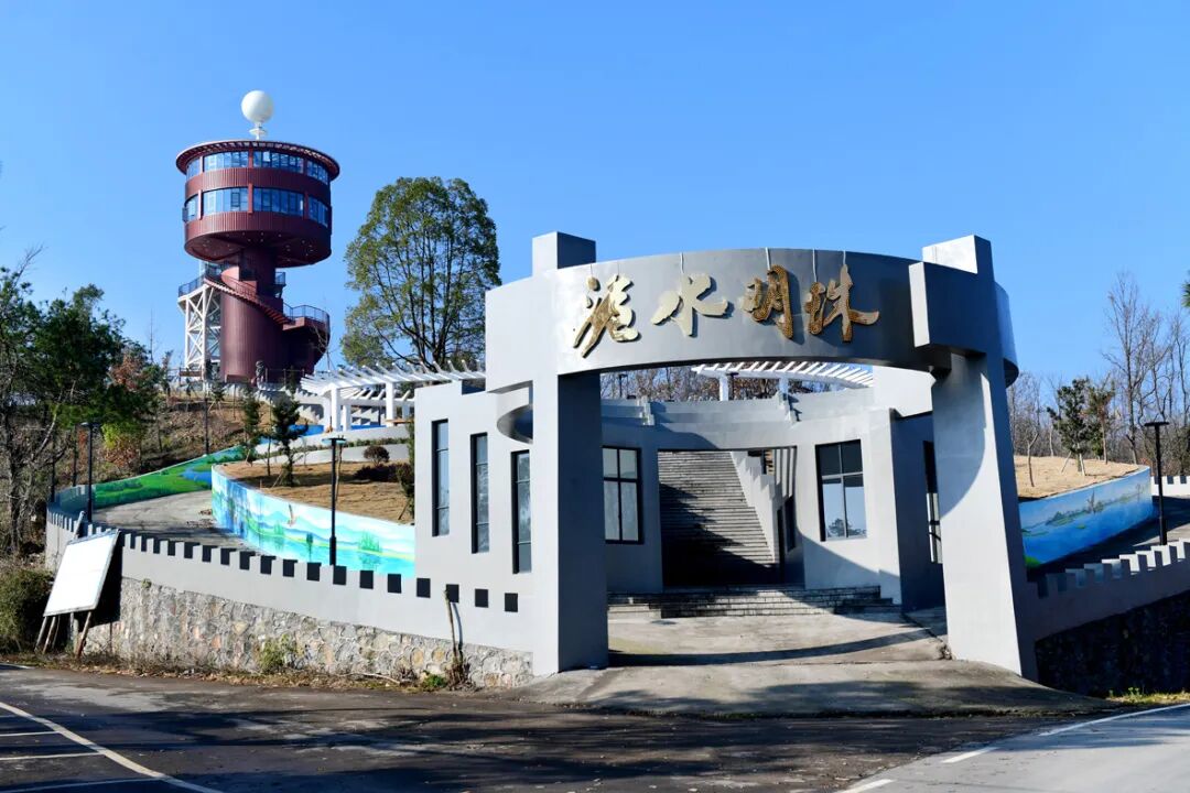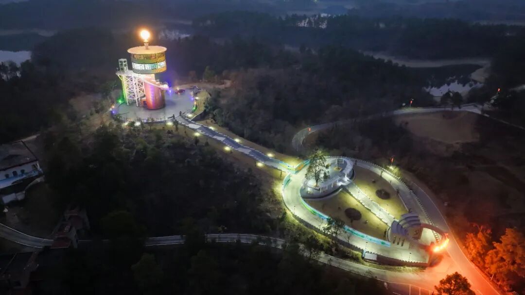 洈水明珠塔始建于1999年,屹立于清水冲山峦最高峰。2024年8月,洈水镇北闸村启动洈水明珠塔维修改造工程,主要包括明珠塔整体维修改造及周边环境打造、门房建筑外立面及室内外墙面装饰装修,以及活动区域的景观建设和电梯采购安装,2024年12月工程完工。
